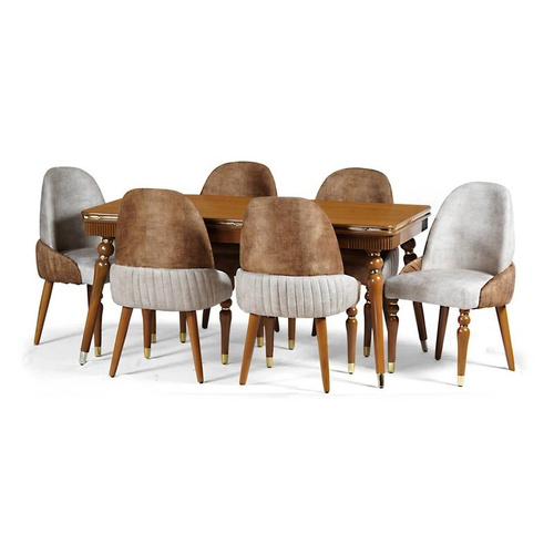 این سرویس غذاخوری محصولی لوکس و لاکچری می باشد. بسیار زیبا و کم جا و سبک مناسب همه نوع منزلی. به همراه صندلی های کم جا مدرن و سبک وزن. این محصول با تلفیقی از طرح های مینیمال طراحی و ساخته شده است. پایه ها ، صفحه و صندلی های این سرویس شیک ، از چوب سوپر راش گرجستان ساخته شده است و از کیفیت و دوام بالایی برخوردار دارد. روکش صفحه این میز از MDF اعلاست. جنس زیرکار فوم 4 سانت 35 کیلویی چوب راش سوپر گرجستان در بازار ایران جزو مرغوب ترین چوبهای موجود وارداتی از کشور گرجستان می باشد . این نوع چوب به واسطه ی کیفیت خوبی که دارد ، قیمت به نسبت بالاتری نسبت به چوب های درجه ی 2 و 3 شامل می شود . چوب راش به چوبی اتلاق داده می شود که در شمال کشور رشد می کنند و جنگل های مرطوب ، زیست گاه این نوع از درختان می باشد . چوب راش موجود در بازار به انواع چوب راش آلمانی ، چوب راش گرجستان و چوب راش ایرانی تقسیم می شوند و برای استفاده در صنایع مختلف چوبی ، مبلمان ، میز و صندلی و ... قرار می گیرند. قطر درخت راش گاهی تا 2 متر و ارتفاع آن سی الی سی و پنج متر میشود . چوب راش در ساخت مبلمان کاربرد زیادی دارد و دارای رنگ کرم مایل به قرمز می باشد. و همچنین در برابر حشرات و قارچها مقاوم است . چوب راش از طریق کشور دوست و همسایه گرجستان وارد کشور می شود که نبستا کیفیت بهتری نسبت به چوبهای داخلی دارد و اندازه های آن بزرگتر است و قطر آنها بیشتر . رطوبت بیشتر این نوع چوب وارداتی موجب کیفیت بهتر آن شده است . چوب راش در بازار ایران در انواع کوتاه و بلند ، چوب راش سوپر و درجه ی 2 و درجه ی 1 موجود می باشد که کیفیت این نوع چوب بسته به میزان ترک های موجود در تخته ها و الوار های چوب میزان گره های موجود می باشد . به طور معمول درجه های پایین تر دارای ترک های بیشتر و نهایتا پرت ( دور ریز ) بیشتری می باشد و همچنین قیمت کمتری نیز دارد.